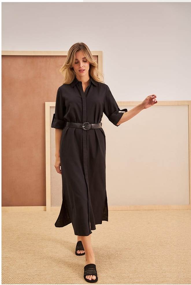 New FashionСукня з додаванням льону L-SU-4641 BLACK
