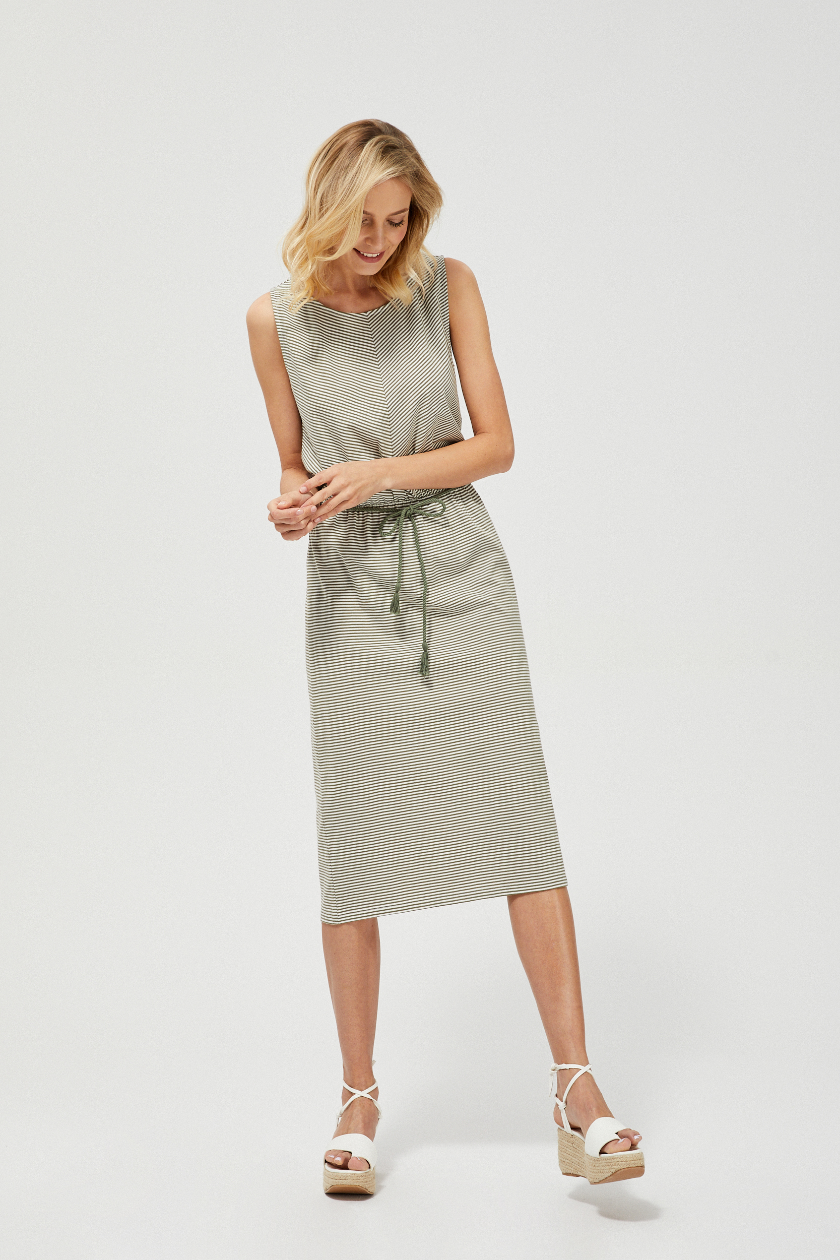 Платье миди оверсайз, с завязками на талии скрывает проблемы с талией.