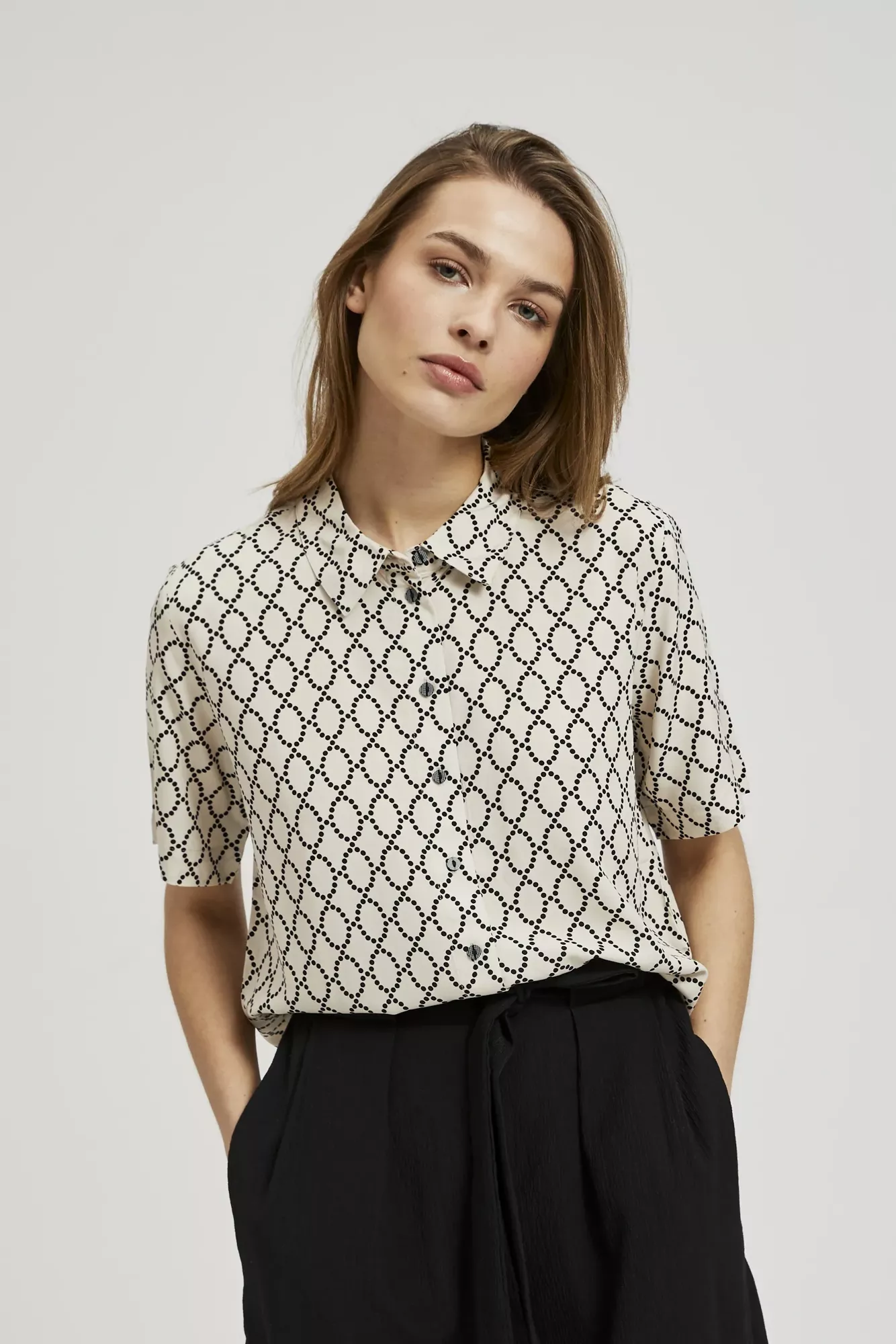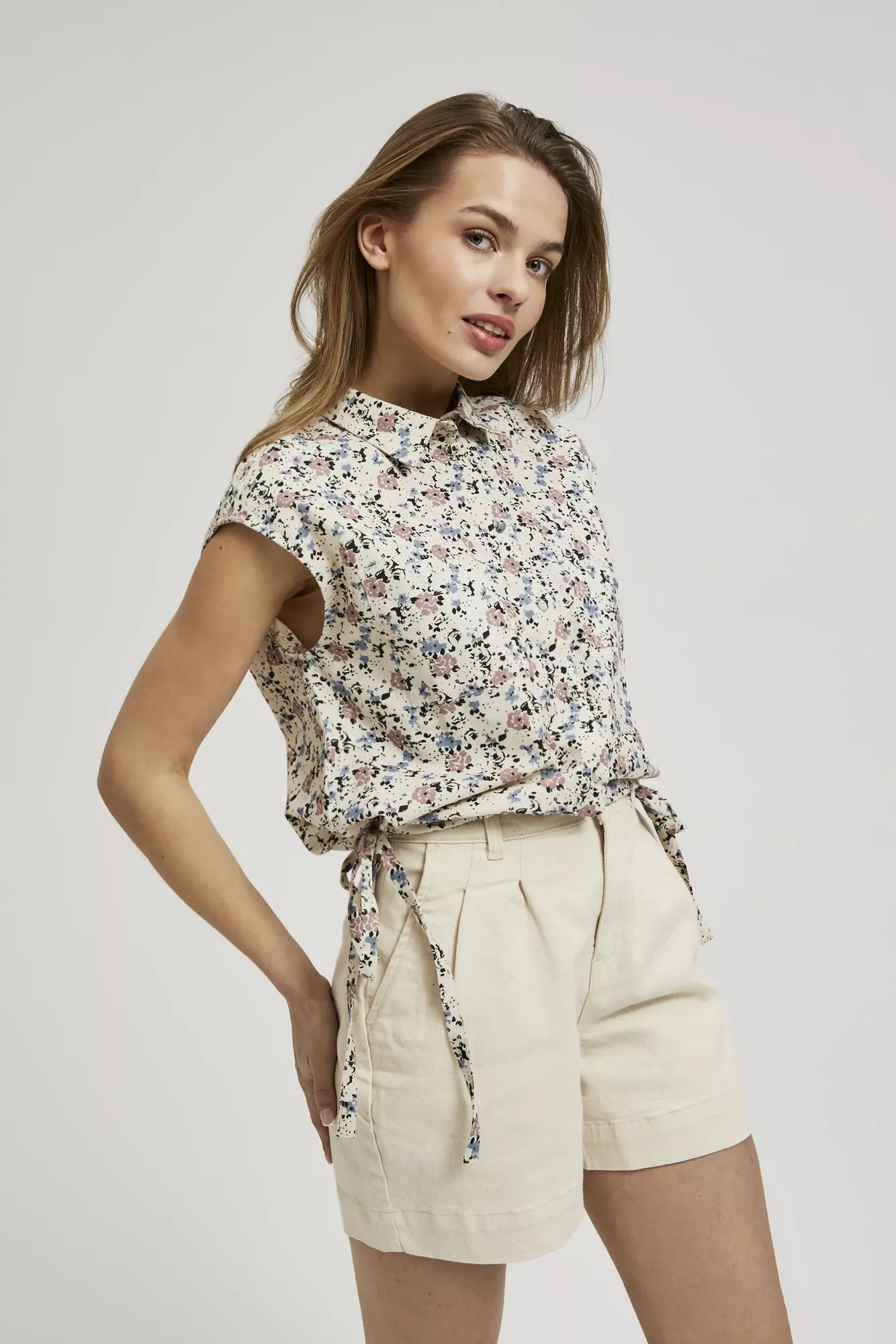 Нова колекція MOODO весна-літо 2024 - це поєдання нових кольорів, відтінків та тканин. В колекції переважають бежевий, відтінки зеленого та білий кольори, а також смужка та різноманітні узори. Є ніжні муслінові блузки та шорти, романтичні блузки зі вставками з прошви, моделі з поєданням льону та віскози.