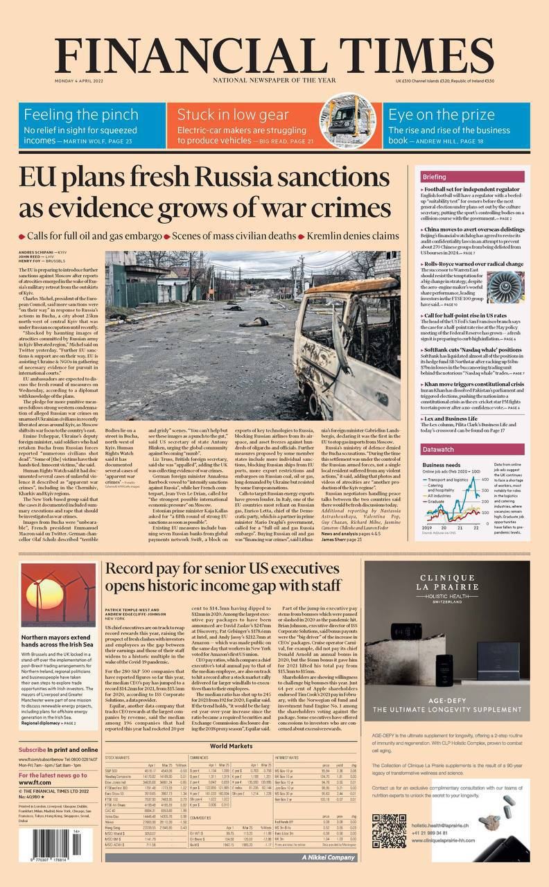 Журнал "TIME" вже вдруге підтримує Україну: на обкладинці випуску від 14 лютого 2022 був зображений українській солдат. Наступний випуск, який вийде 14 березня, буде містити на обкладинці український прапор та фразу "Життя переможе смерть, а світ — темряву".